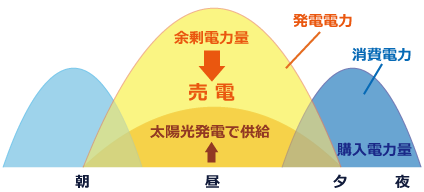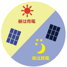 | 夜間は発電できないため、電力会社から買電(電気を購入)します。その際、夜間の電気代を安くする時間帯別電灯契約※を利用すれば、さらに効率的に電気代を節約することができます。 |